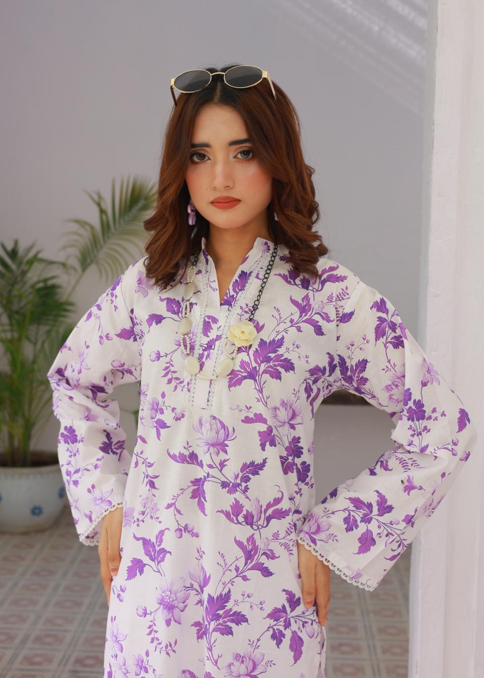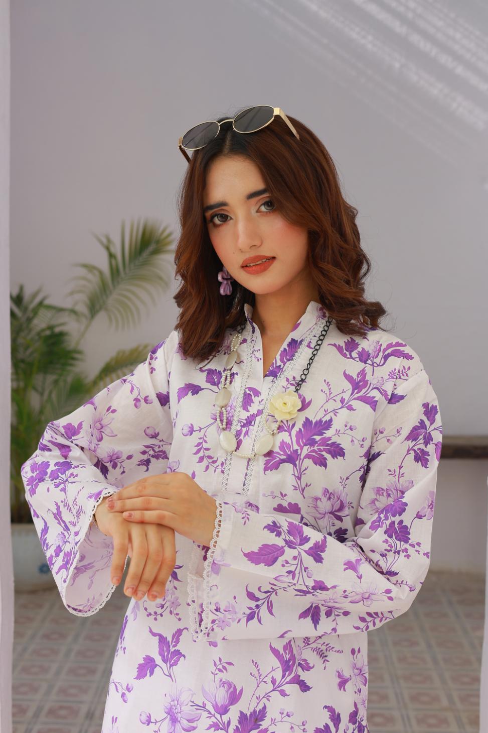 Step into comfort and style with this printed cambric coordset. The set includes a soft cambric shirt adorned with delicate prints, paired with a voluminous farshi shalwar that adds a graceful yet chic touch. Designed for all-day wear, this outfit balances classic charm with modern ease — making it your go-to pick for casual outings or relaxed gatherings.