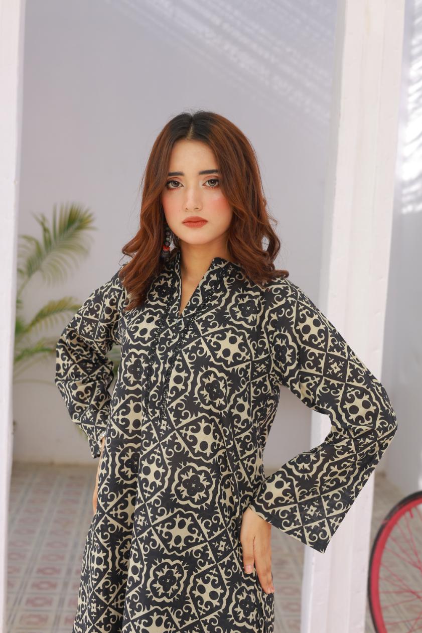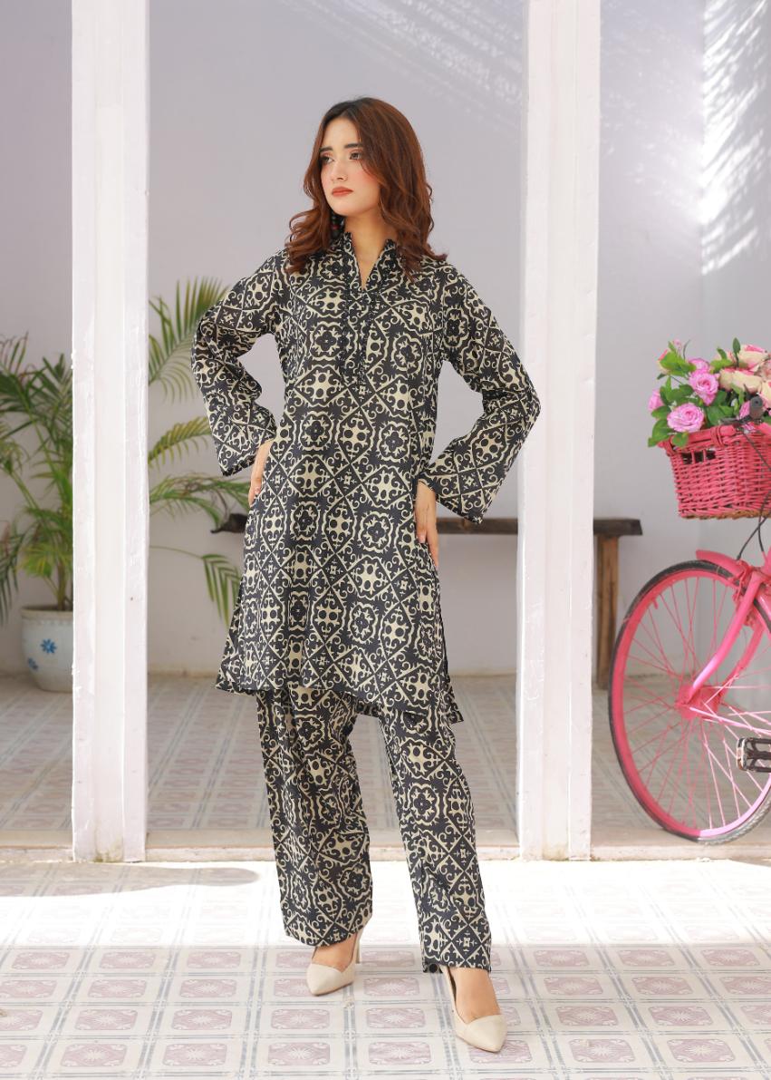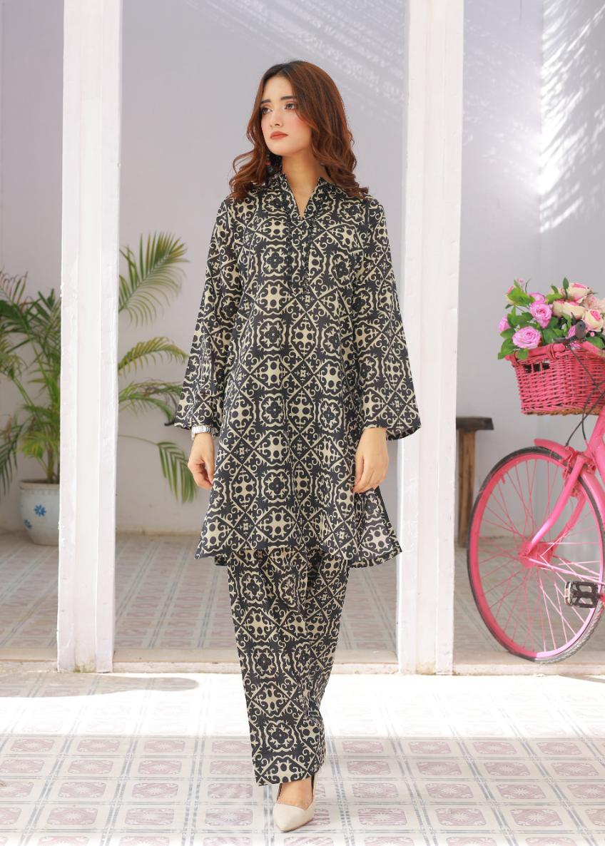 Step into comfort and style with this printed lawn coordset. The set includes a soft lawn shirt adorned with delicate prints, paired with a voluminous farshi shalwar that adds a graceful yet chic touch. Designed for all-day wear, this outfit balances classic charm with modern ease — making it your go-to pick for casual outings or relaxed gatherings.