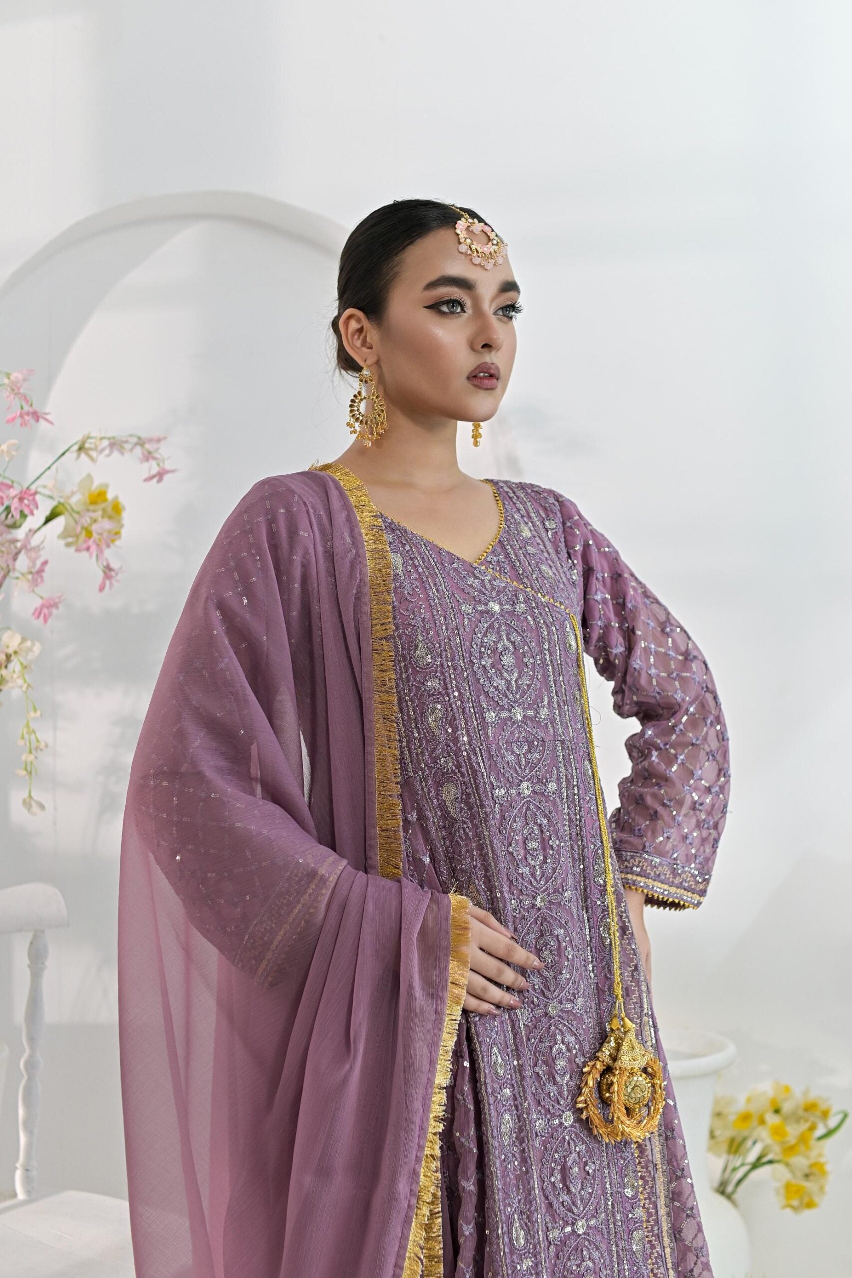 Chiffon zari emb muave 700