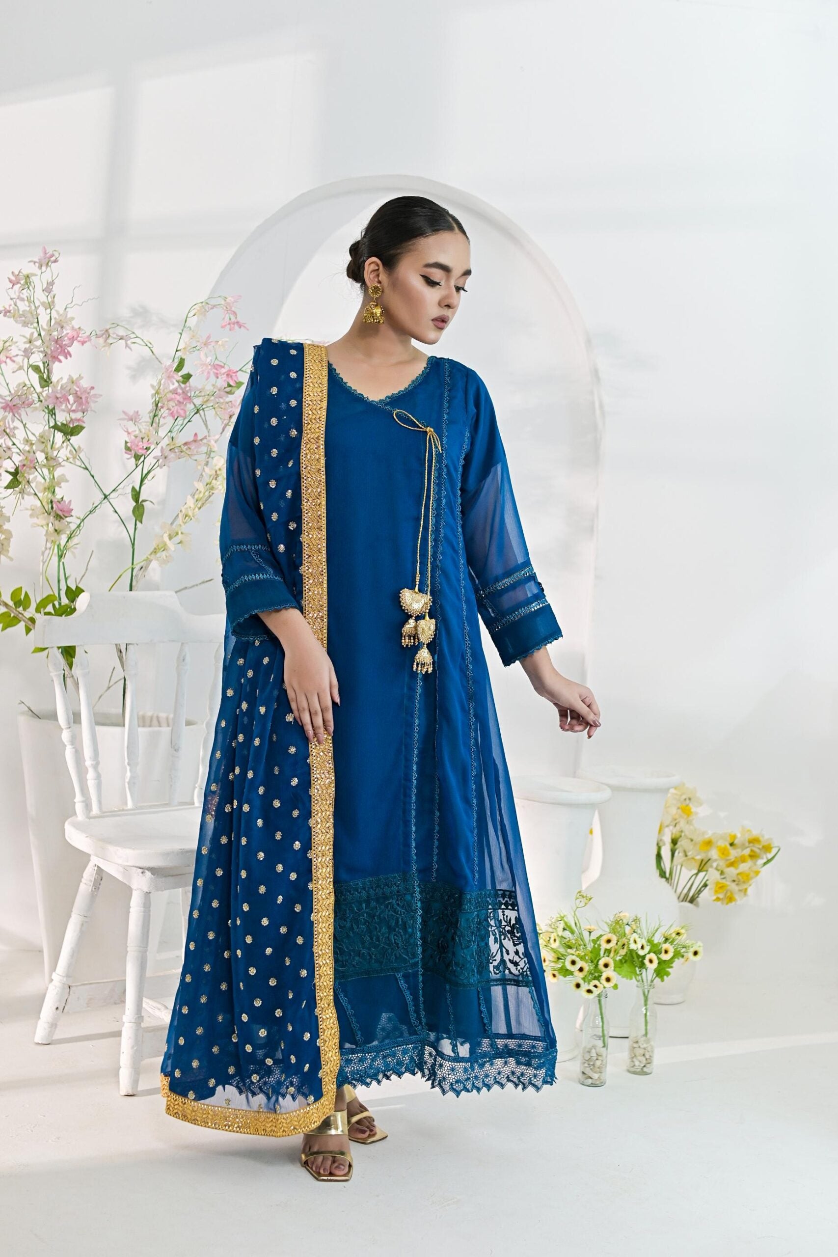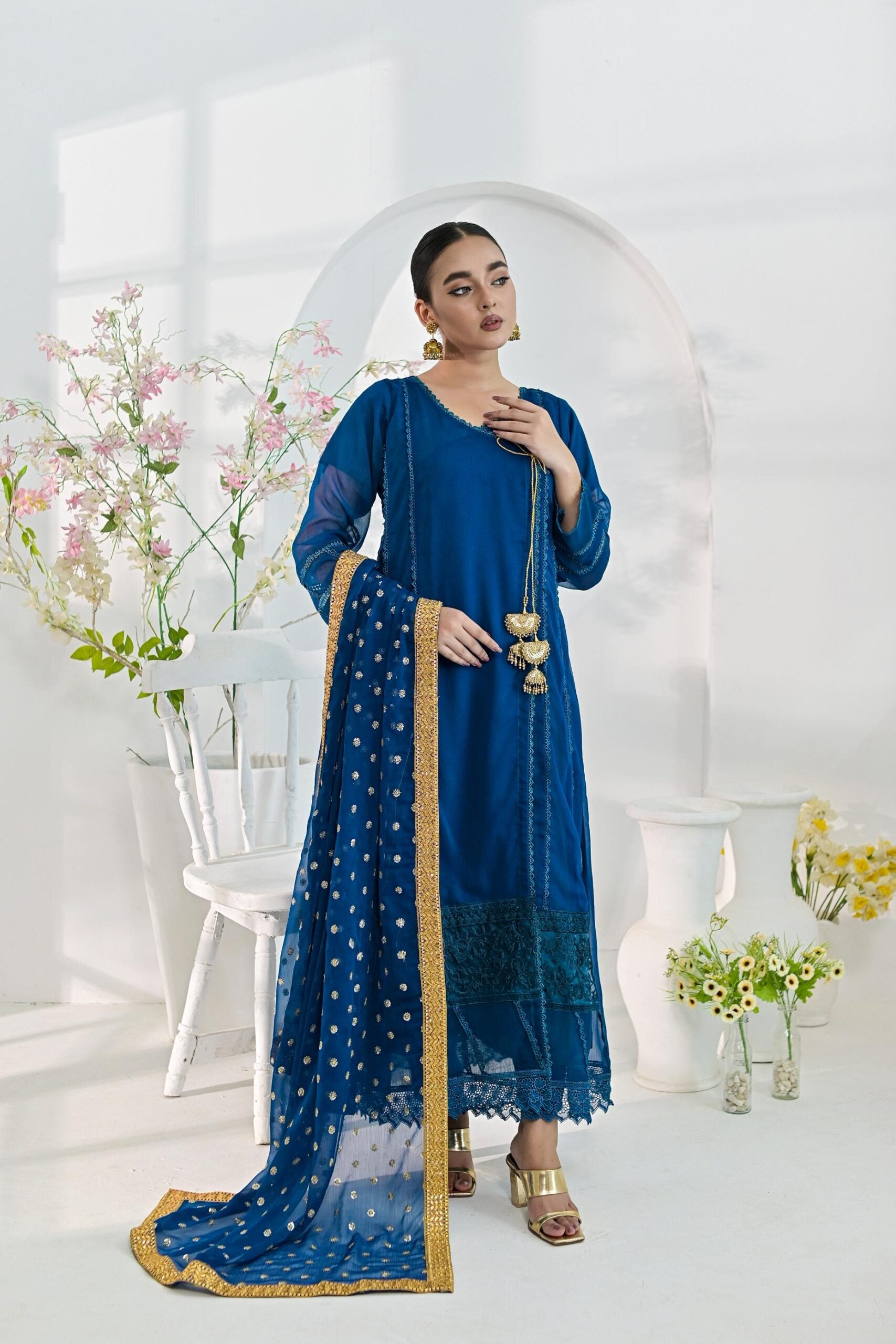 stitched chiffon 3 pc suit length 48 inch