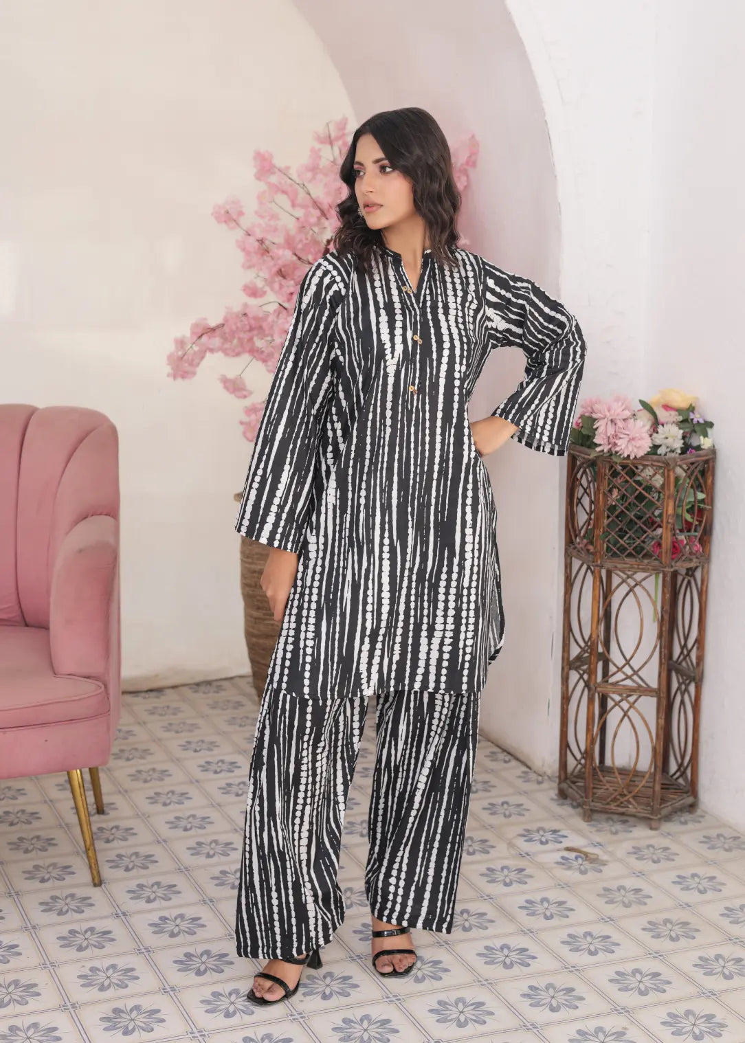Step into comfort and style with this printed cotton coordset. The set includes a soft cotton shirt adorned with delicate prints, paired with a voluminous farshi shalwar that adds a graceful yet chic touch. Designed for all-day wear, this outfit balances classic charm with modern ease — making it your go-to pick for casual outings or relaxed gatherings.