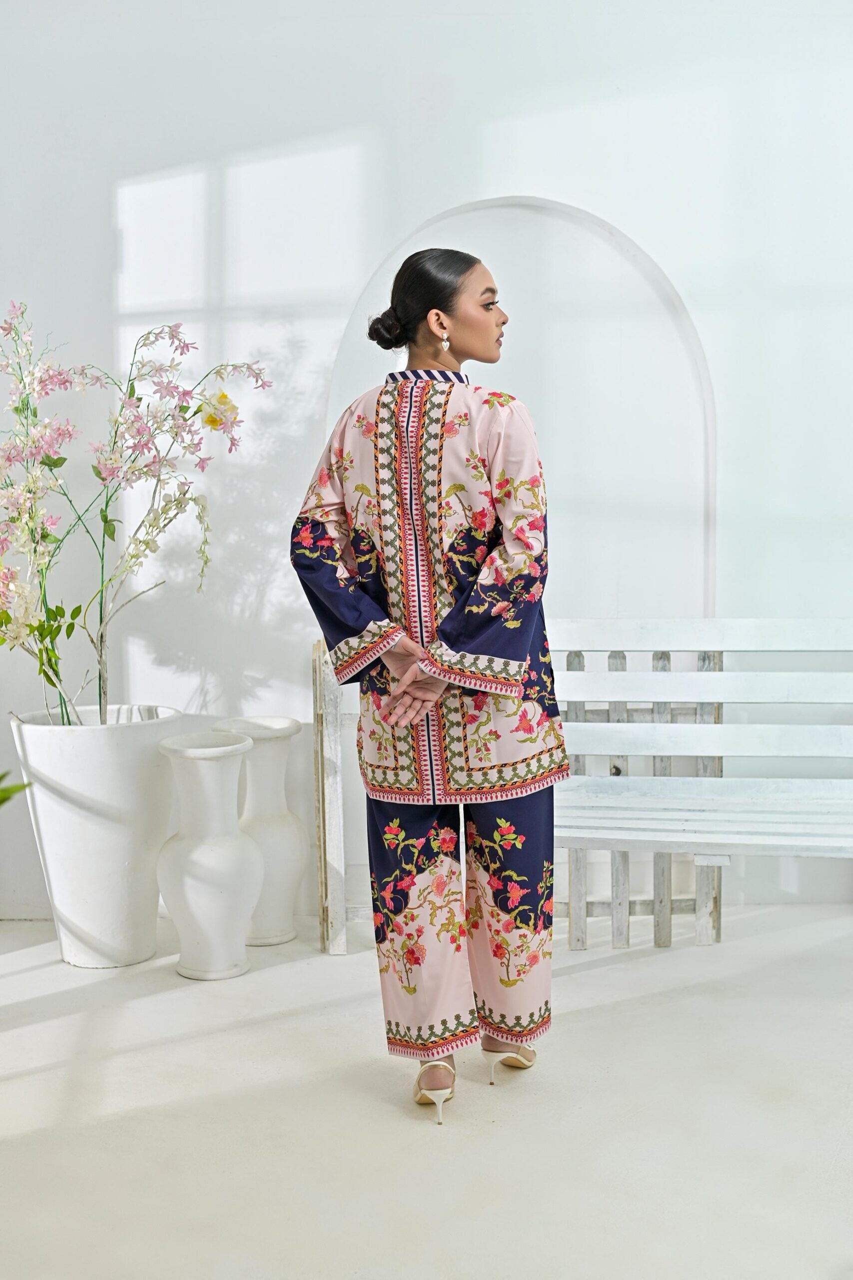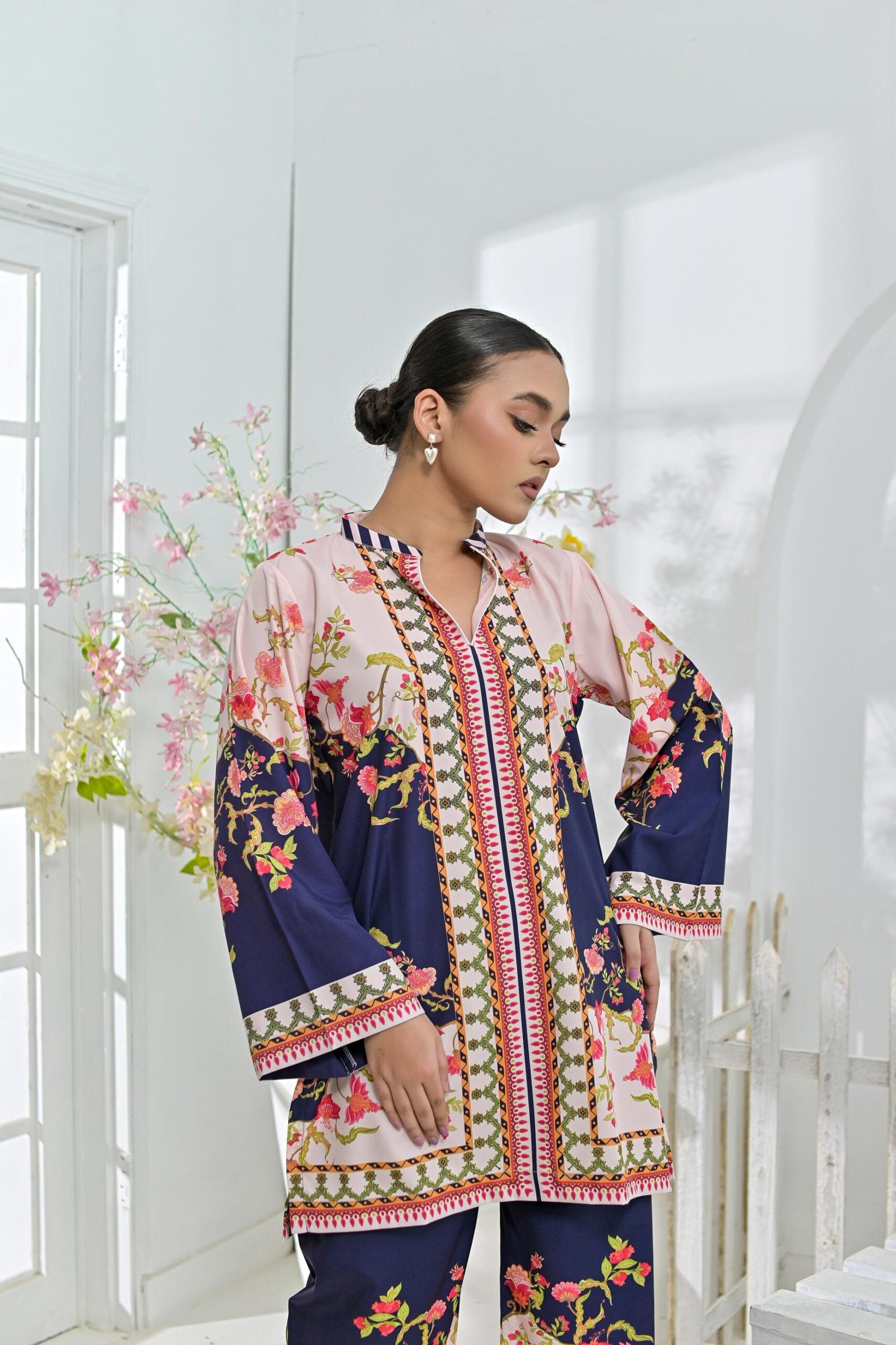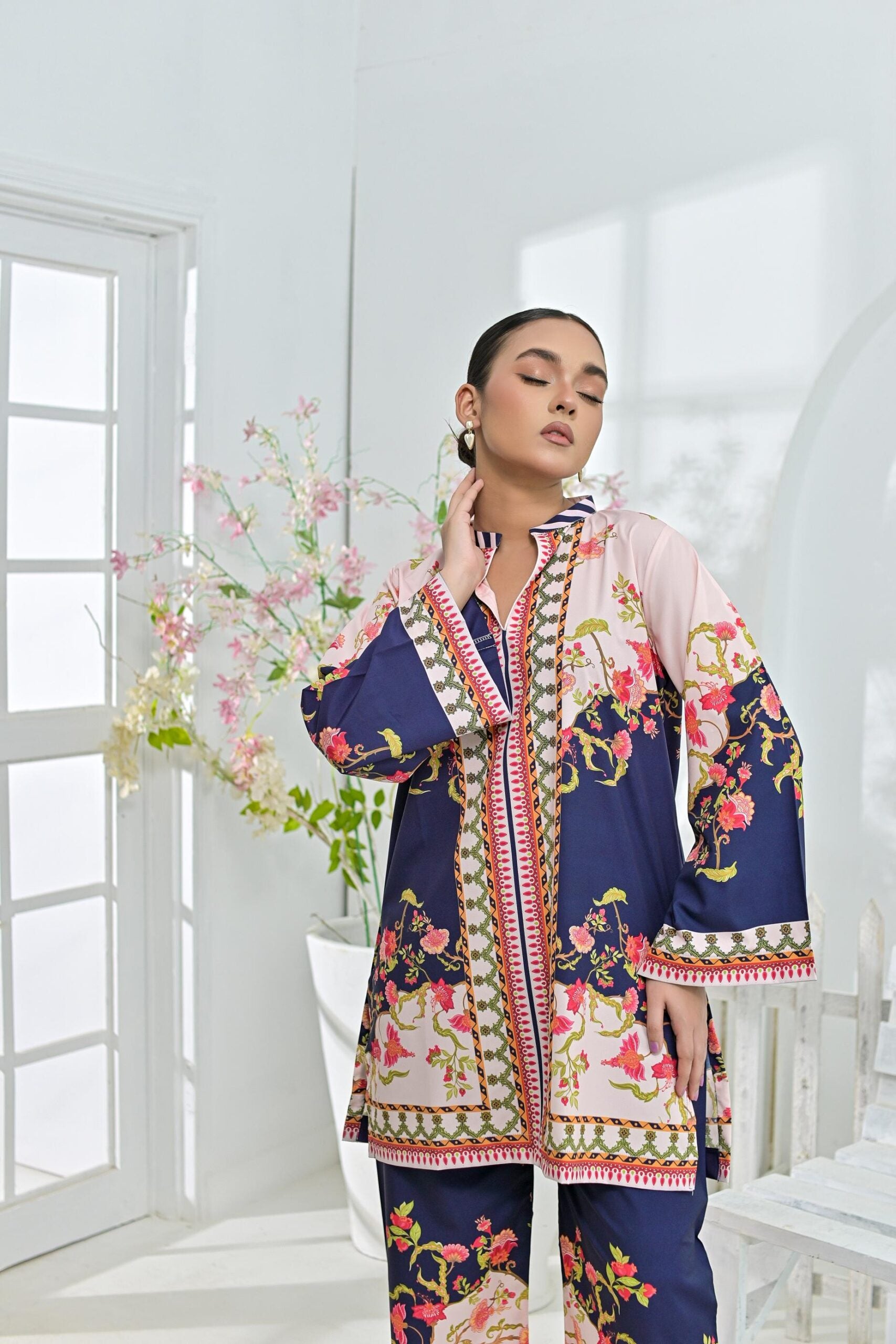 Crepe printed set 79410 NavyPeach