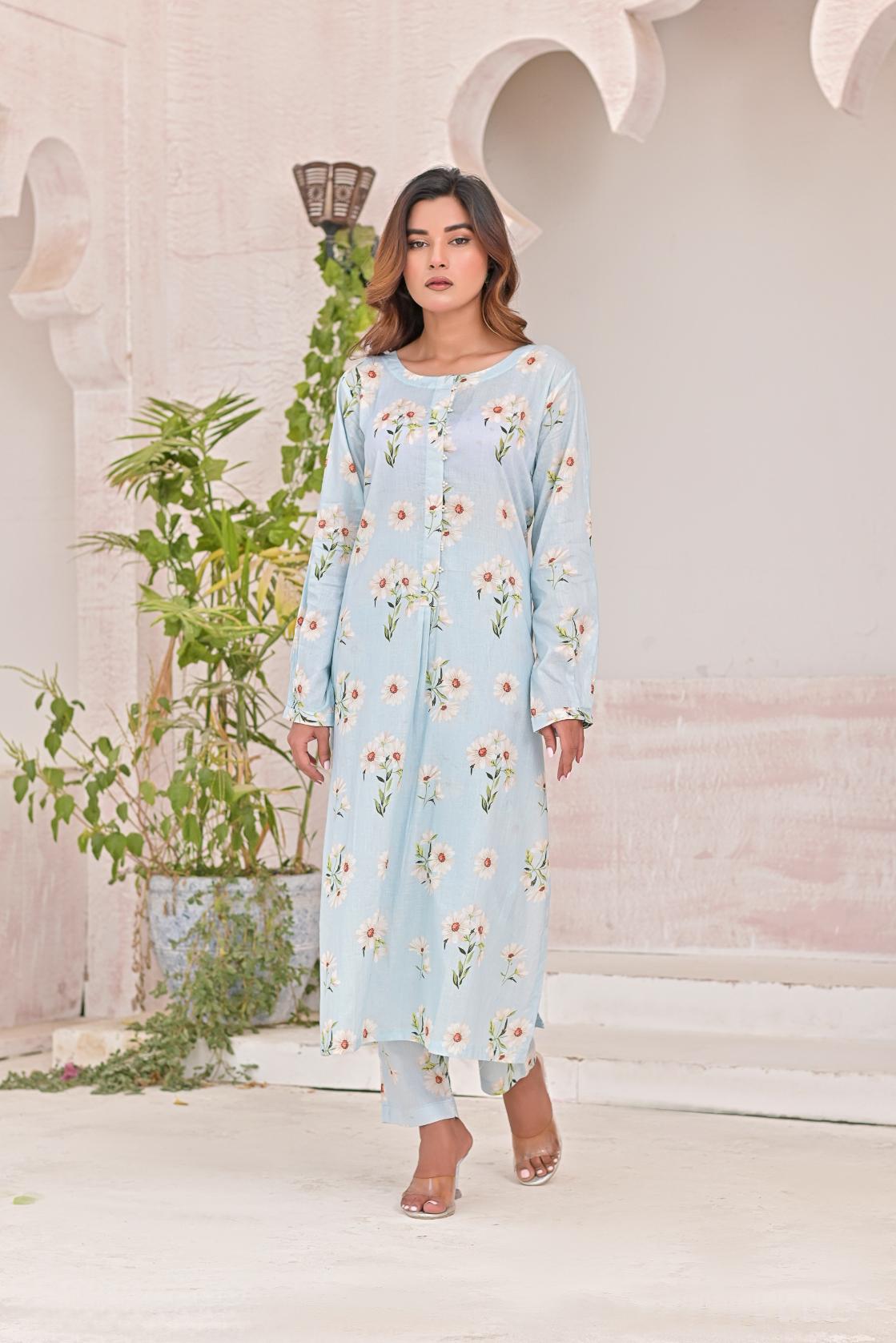 Fine quality Stitched cotton Lawn printed 2-piece suit.
