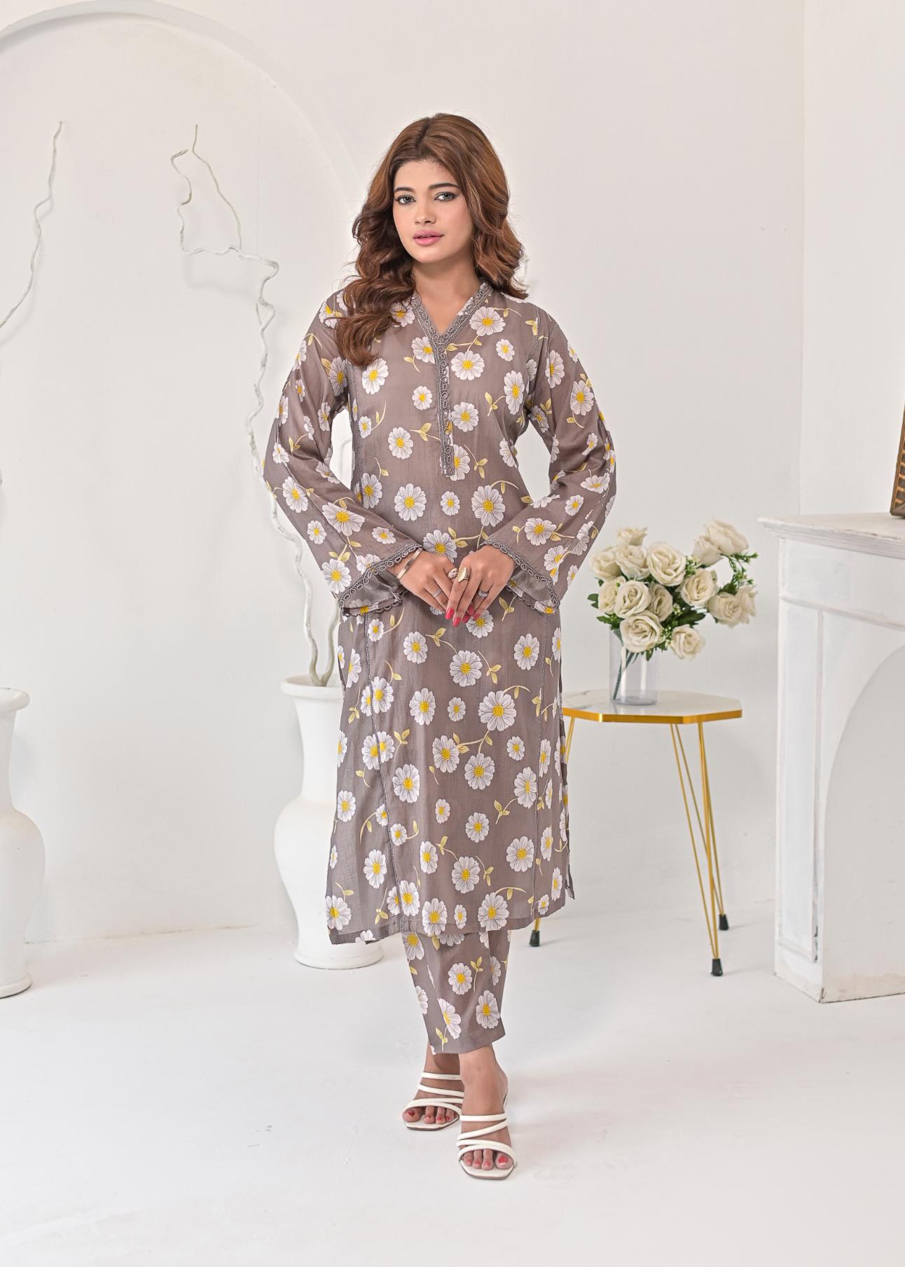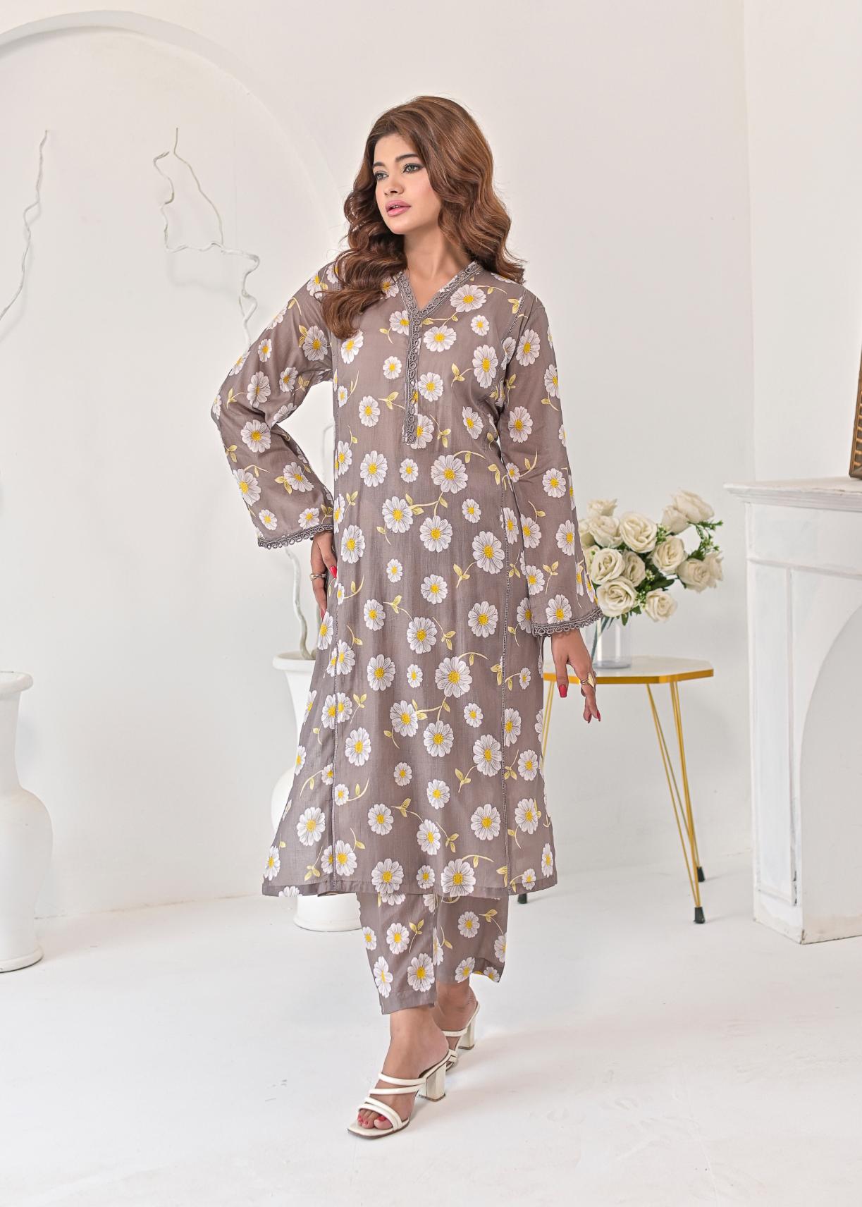 Fine quality Stitched cotton Lawn printed 2-piece suit.