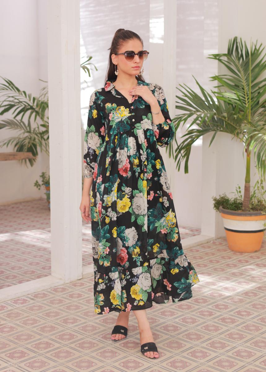 Printed Linen long frock that’s comfy, chic, and perfect for pre-fall vibes. Easy to style, easy to love!